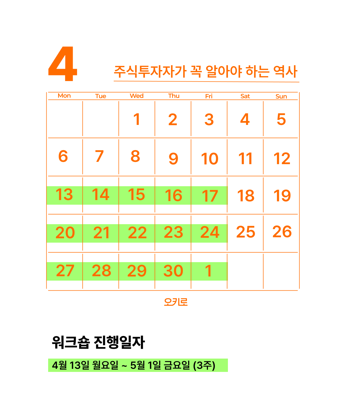 진행 기간: 2026년 4월 13일 월요일 ~ 2026년 5월 1일 금요일